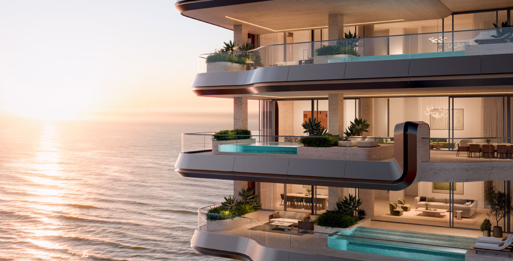 Architektúra pracuje s prirodzeným svetlom ako hlavným prvkom priestoru. Veľkoformátové okná od podlahy po strop zaplavujú interiéry slnkom a vytvárajú atmosféru pokoja a otvorenosti. Silueta budovy pripomína pohyb morských vĺn a posilňuje pocit prirodzenej harmónie.