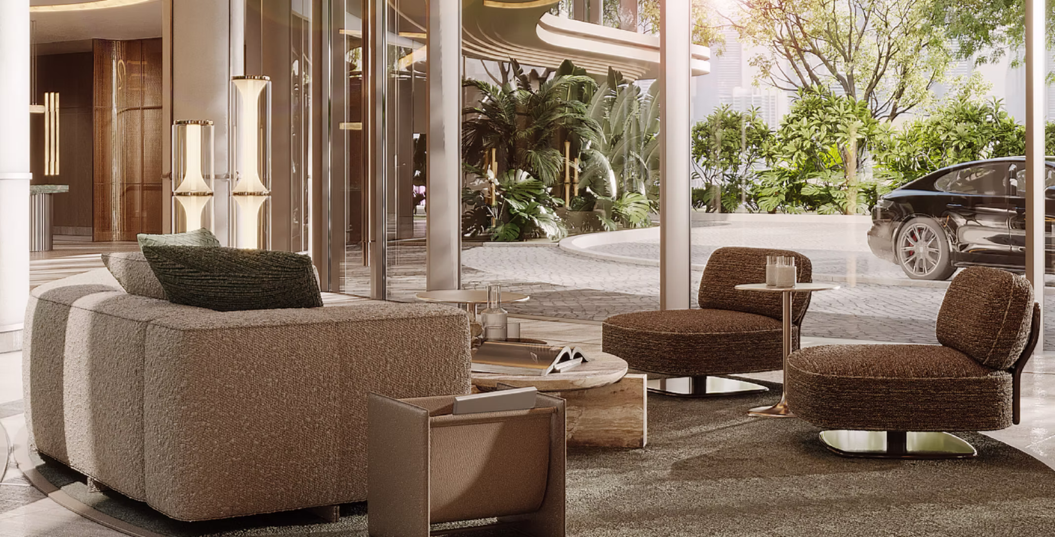 Rezidentom je k dispozícii servis Dorchester Collection, ktorý prináša úroveň starostlivosti známu z najprestížnejších hotelov sveta. Každá rezidencia disponuje priestrannými terasami, privátnymi bazénmi a výhľadmi na Arabský záliv aj panorámu mesta.